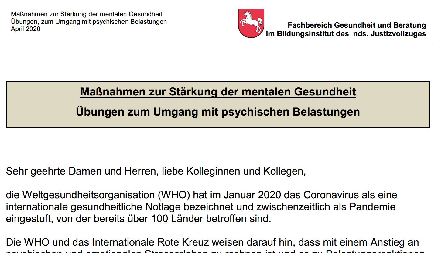 Maßnahmen für mentale Stärkung und Psychohygiene, insbesondere bei Quarantäne und Ausgangsbeschränkungen